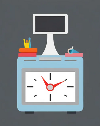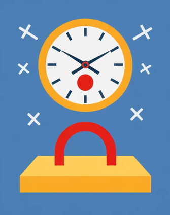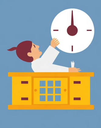 The figure's dynamic pose suggests action and struggle, perhaps reflecting modern life's fast pace and constant battle against time constraints.